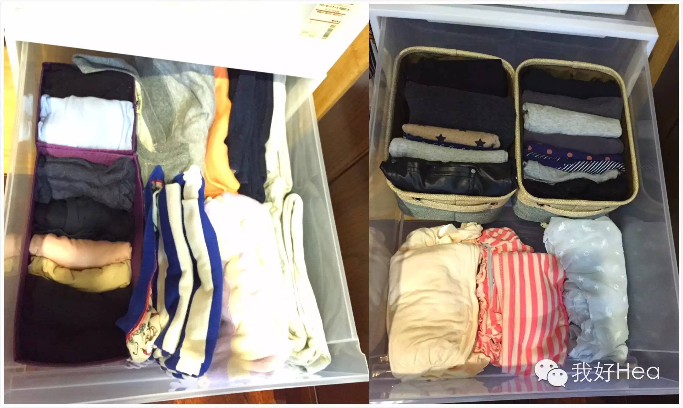 hea姐只是觉得,叠成正方形也好、长方形也好,只要和收纳盒的大小匹配,最大程度利用到收纳盒的平面大小就行了