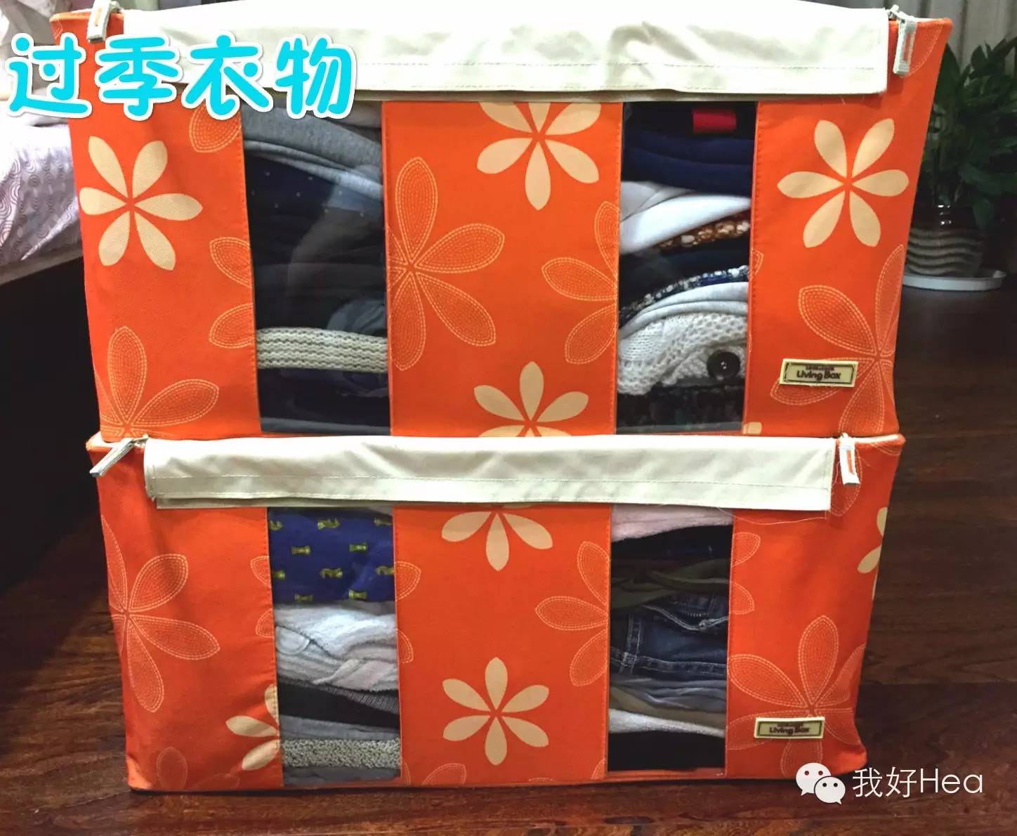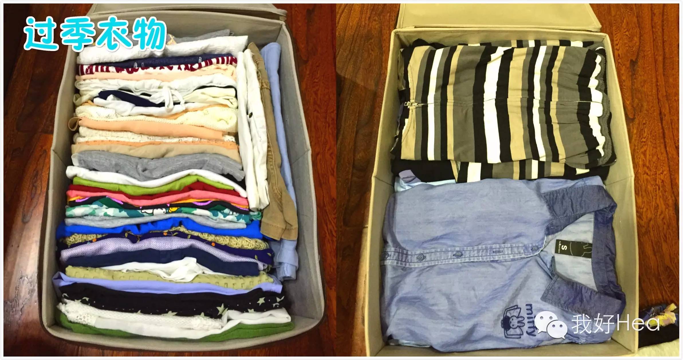 收纳盒不可以太大,因为过季的衣物通常我们会放在衣橱的最上层,过重对衣橱是个负担,对把衣物抬上去的你的老公更是一个负担