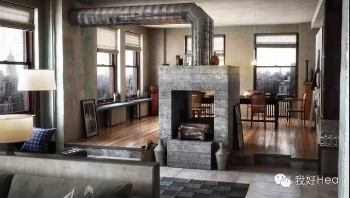 留一面纯灰色的墙壁,挖空烧个火,看着心里就暖和了