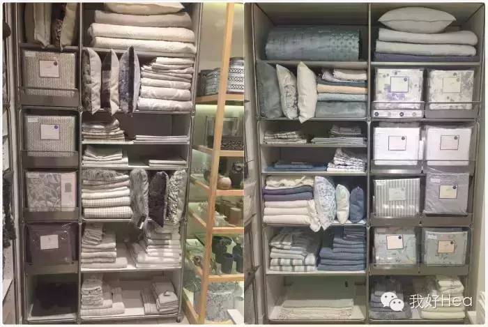 zara home的纯棉床上用品是按照紫色、灰色、蓝色、粉色陈列的,外貌控hea姐最爱!床单259元。