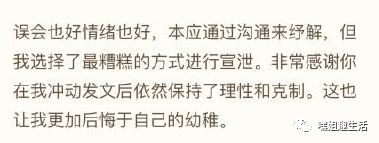 可没过几天,她又发了另一条长微博道歉,为自己的情绪化深感幼稚。