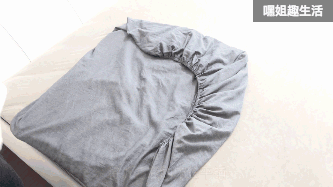 翻转一边床单去套住另一边,这样有松紧带的边被翻折进了床单里面
