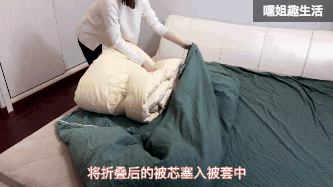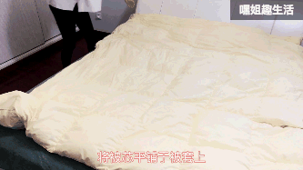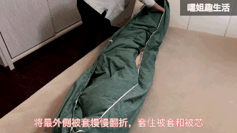 第二种方法叫“鸡肉卷法”,没错,套被套也能用鸡肉卷的方法