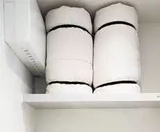 床上用品使用频率不高,最适合收纳在衣柜的高处。如果数量多的话就要贴好标签。