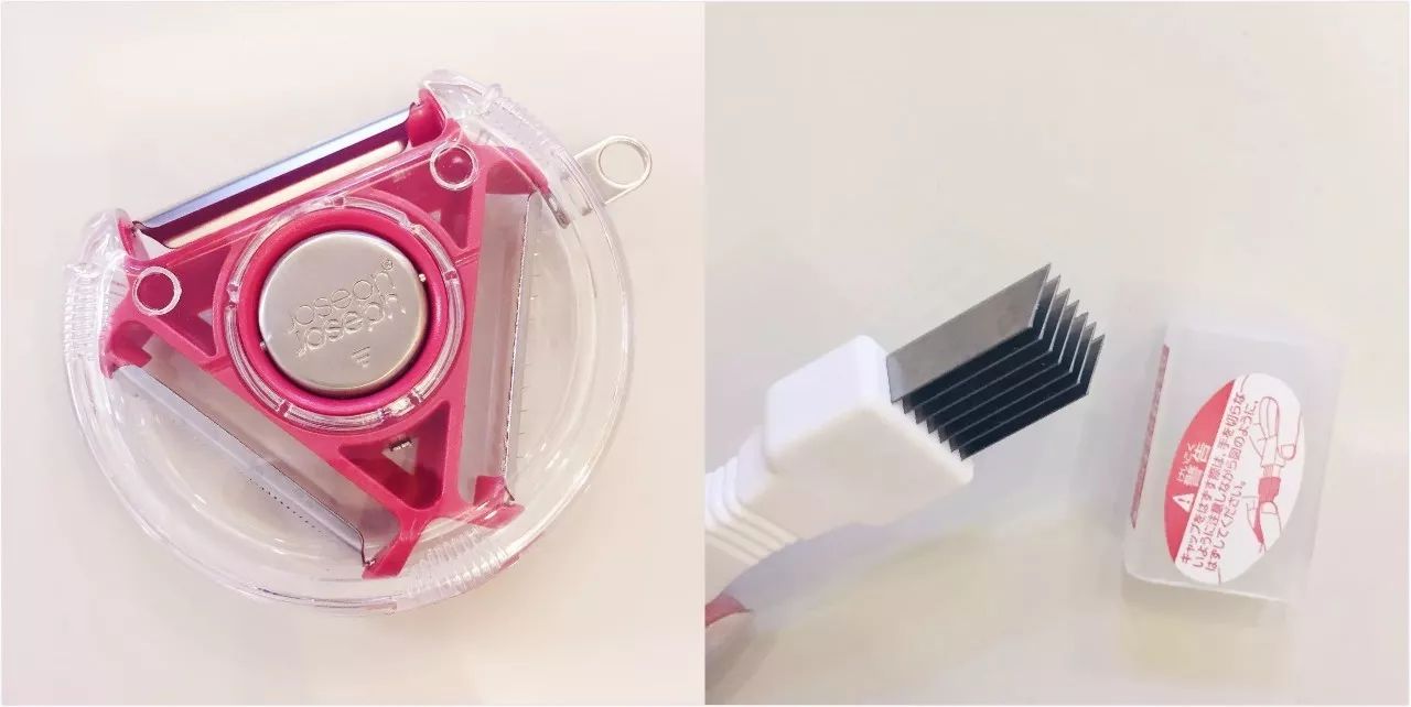 厨房小工具也是我爱买的东西之一,左边是个在英国买的多用途刨刀,设计得很人性化,右边是可以把葱切成丝的小工具。