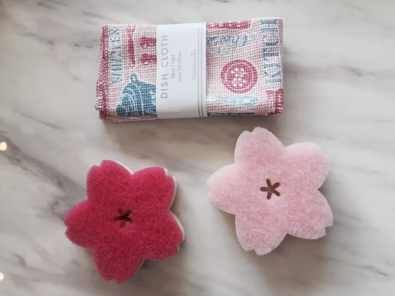 樱花百洁布和洗碗布,粉粉的看着也能心情好起来。