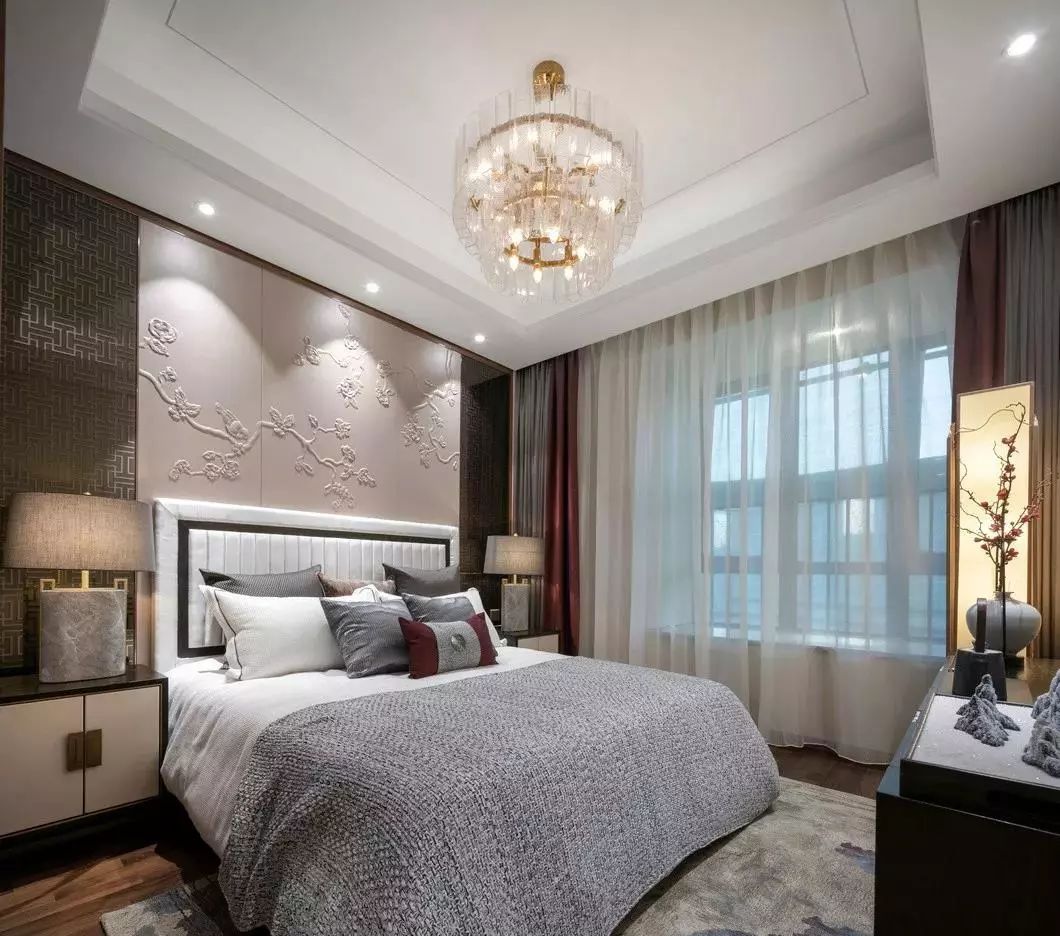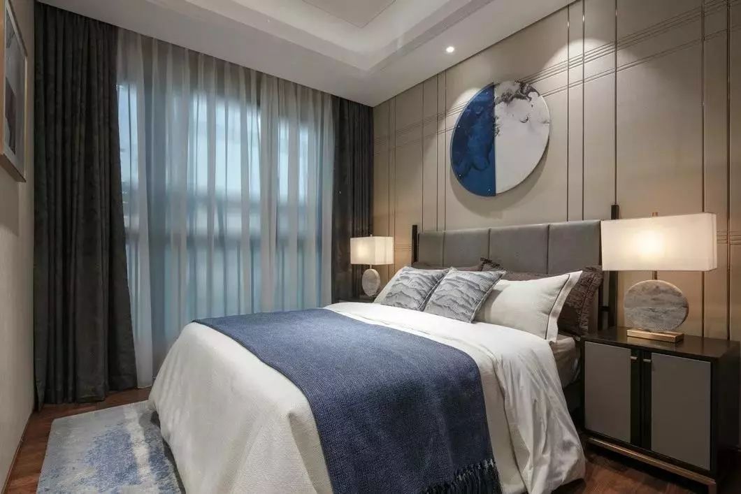 主卧整体氛围淡雅而不失厚重