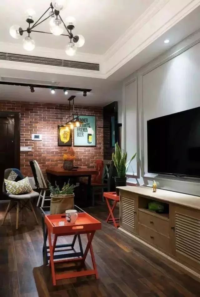 △ 砖墙墙面,在咖啡馆里面的常用装修招数放在现在的客厅,一点也没显不好看,反而增加了点城市复古风的萧瑟时尚。