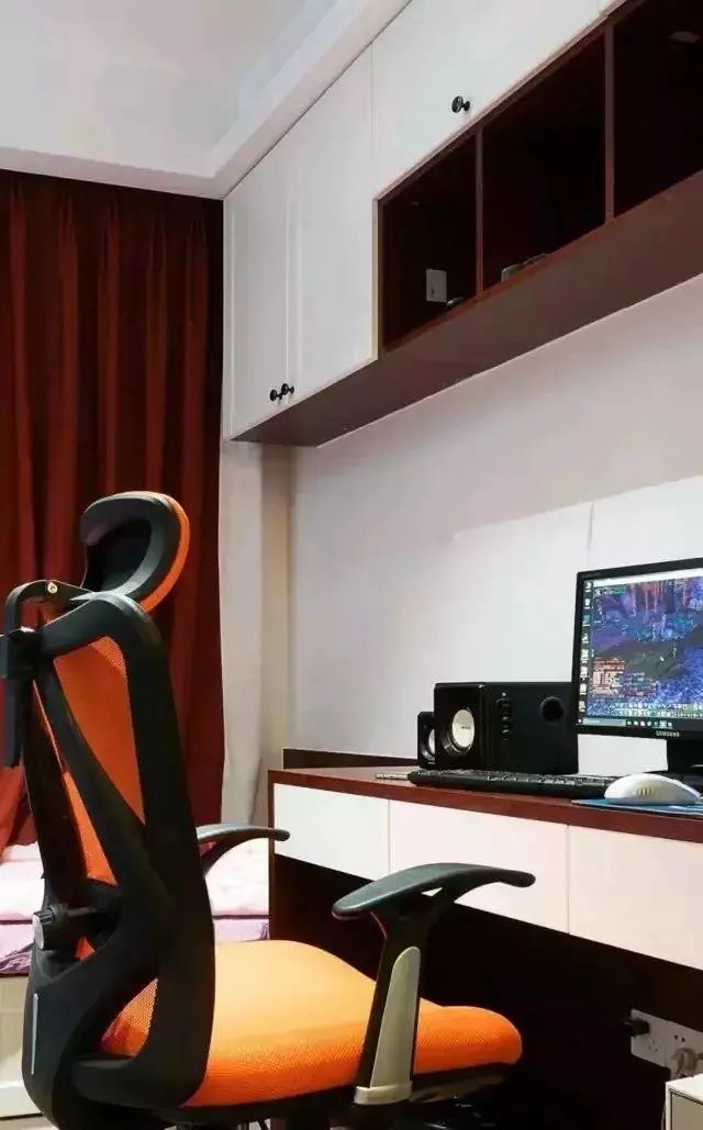 △ 书房也走务实风气,将柜面和办公椅融入,明亮的元素杂糅进软装,成就一间好的卧室空间。