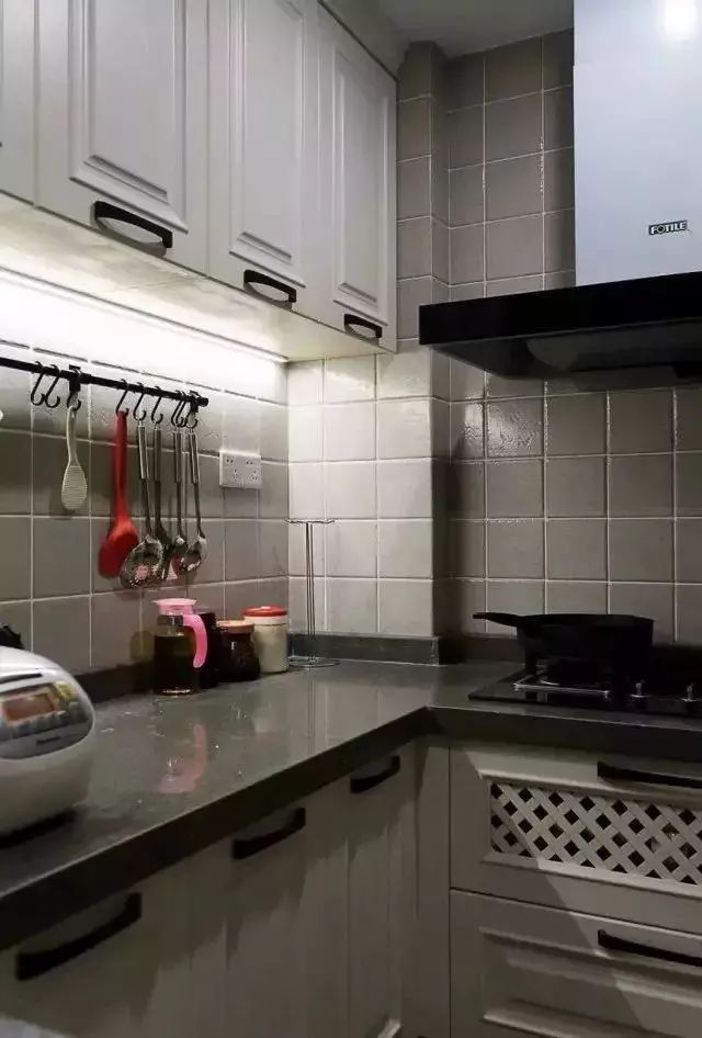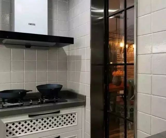 △ 菱形镂空门板,白色橱柜、大理石台面,没有多余造作的装饰,与整体的工业范相映成趣。