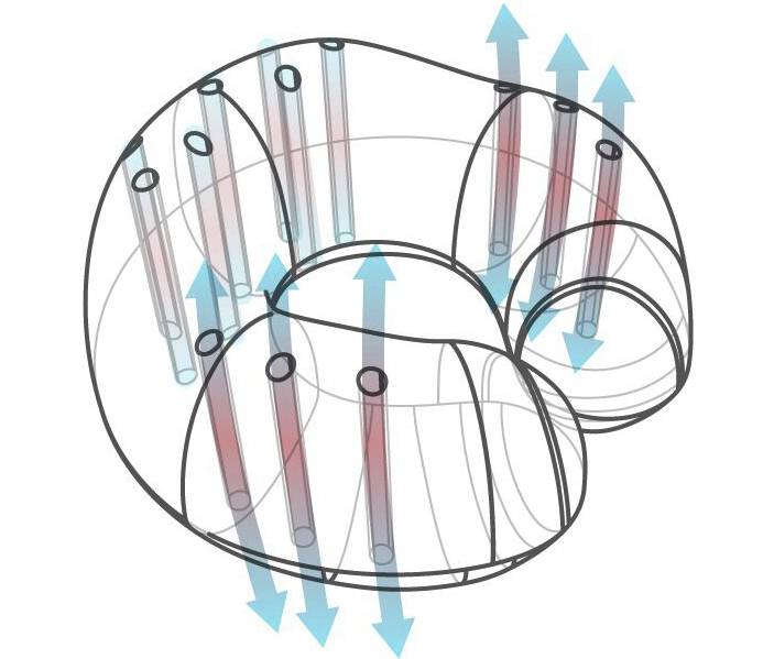 原来,人家是在剪裁上花了心思。为了能够全面贴合内胆,这款颈枕用了5片式立体剪裁,而普通的U型枕都是两片式剪裁,卷起来会崩坏枕套。