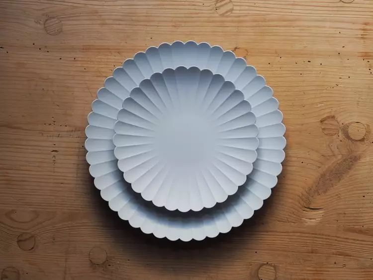 1616 / Arita Japan 的餐盘,都是很简约清新的模样,淡淡纯色的圆盘或者菊花盘,摆上餐桌就有一种安静惬意的感觉,配上的食物并不一定要多复杂,但是也能让人有温馨、放松的用餐体验。