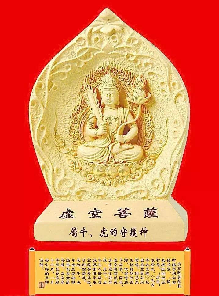 【属牛、虎:虚空藏菩萨】虚空藏菩萨具有赐予利乐的力量。“藏”表示无限福德智慧,“虚空”表广大。虚空藏菩萨是诚实、富有的象征。不虚不空是佛界的财神,当朋友们佩戴时能够使朋友们避开破财、败财的灾难,使朋友们财路畅通无阻,且能生财聚财,得八方贵人相助,远离小人,人财俱旺。