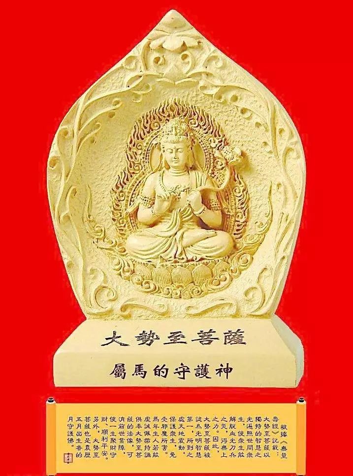 【属马:大势至菩萨】大势至菩萨能够给朋友们智慧之光,使朋友们在人生道路上一帆风顺,事业有成,佛光永照,化煞化凶,吉祥如意。