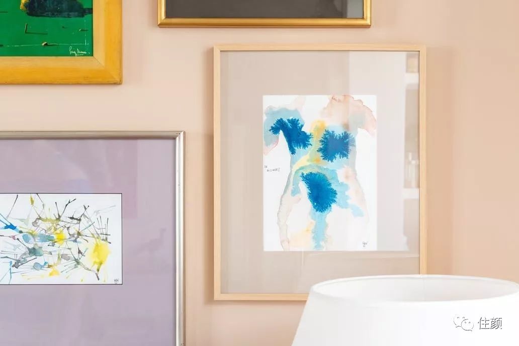 墙上的挂画,都是Hernan自己绘制的,与墙面的淡雅色彩相得益彰。颜色柔且不燥,非常的舒压。
