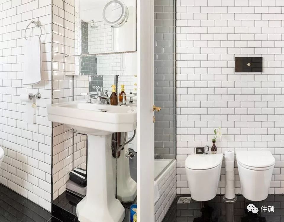 卫生间大面积使用白色通体砖,再加干净利落的线条,给人一种清新的视觉感受。