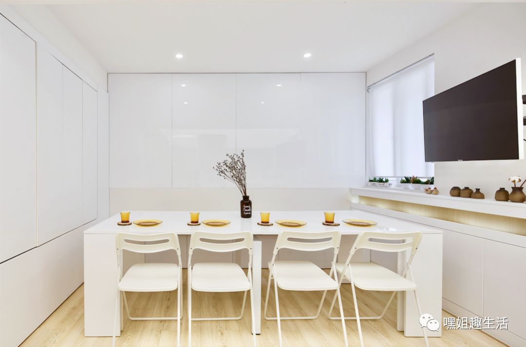 2室一厅要住下一家六口,满足每个人3-5年的需求不是件容易的事情,纵观整个房子,只有客厅能发挥多一重作用,我们上海人有句话叫做“螺蛳壳里做道场”,设计师真的很用心了!