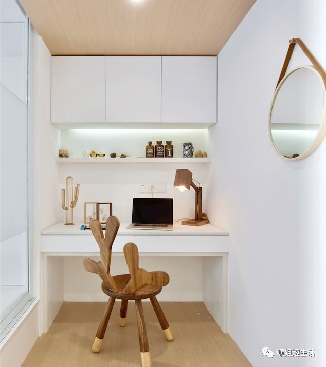 所以这次设计师在主卧门口设置了一个书房,同时也是妈妈的化妆台。