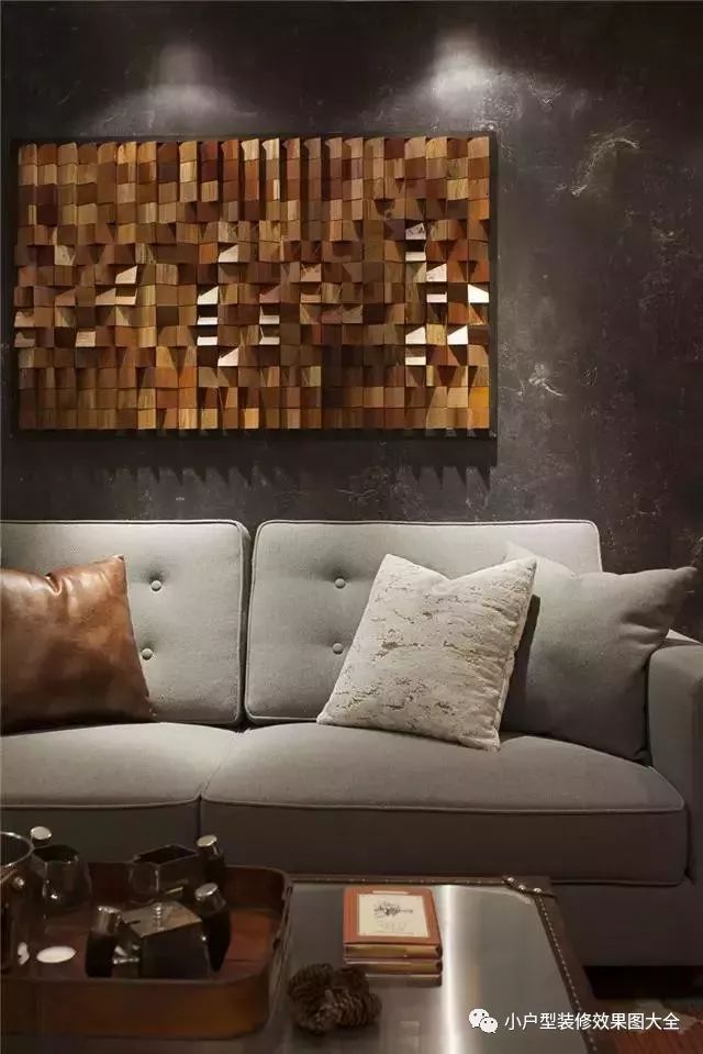 沙发背景墙上的这个小木块的装饰就是在用小细节来衬托空间的层次性。