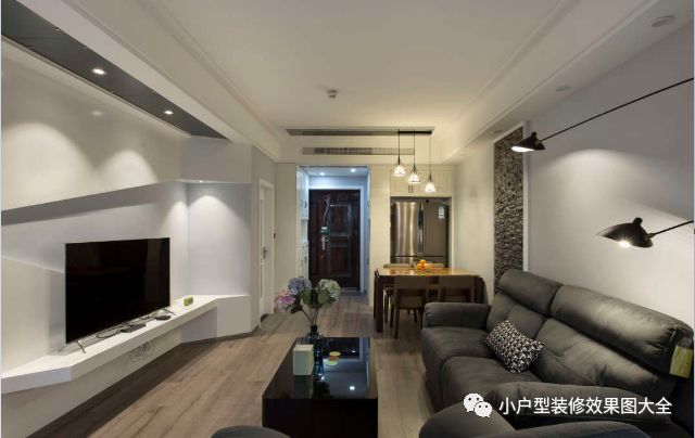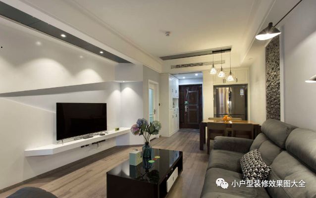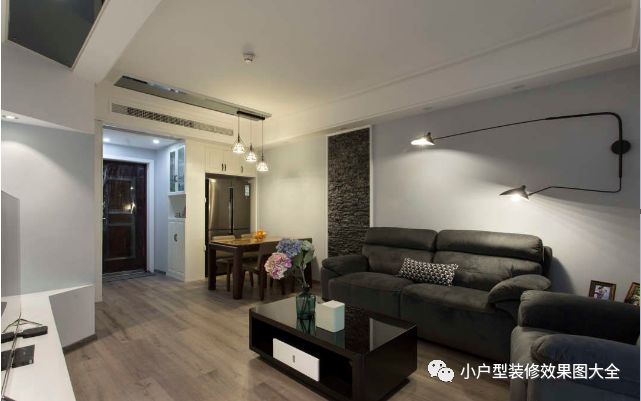 看一间房子首先看到的就是它的客厅,这个客厅的整体颜色看上去比较的深沉,然而这就是这种风格的魅力了,这种冷冷的色系能够在空间的视觉上使得房间看上去比较大气,宽敞,不会显示出小户型的拥挤感。