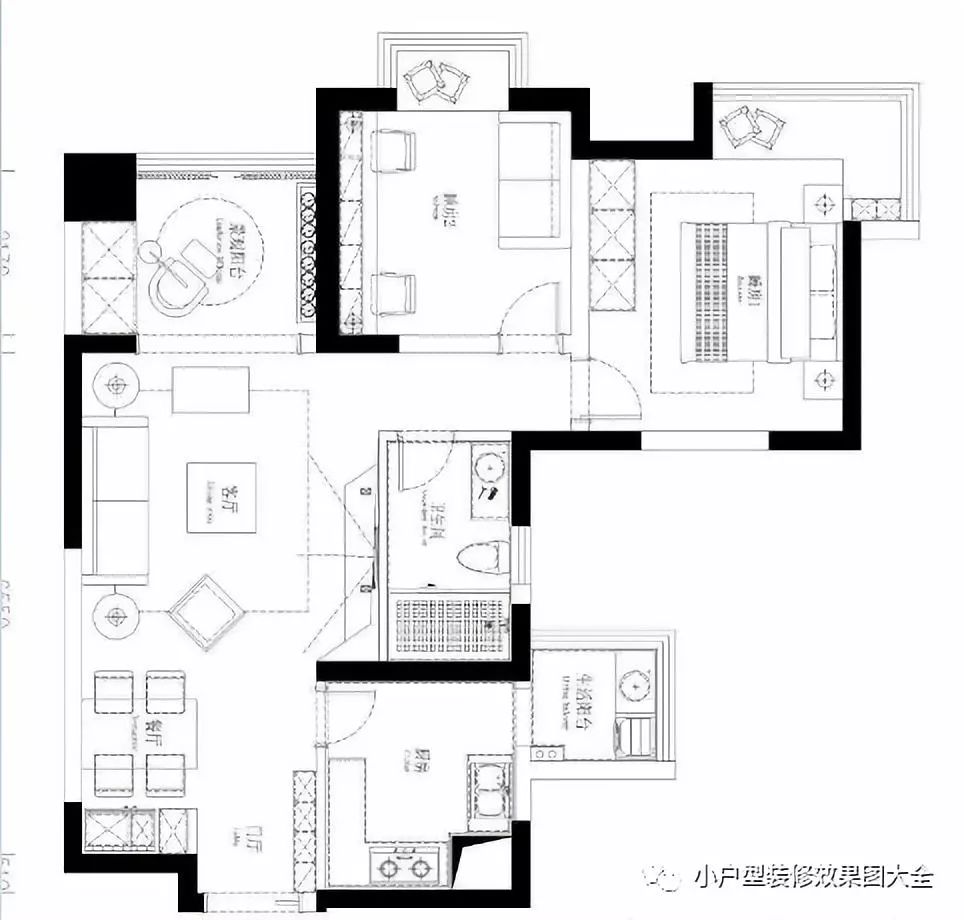 上面这张就是整个户型的房间的功能区分布图