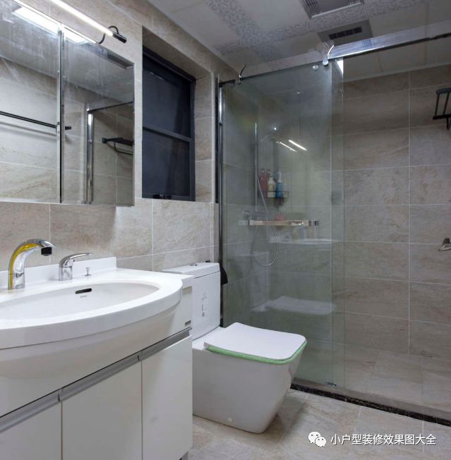 卫生间是很多人在装修的时候很注重的一点,这个小小的二居室并没有因为面积受限二让卫生间看起来很拥挤,反而看上去很宽阔呢。小小的玻璃隔断不但划分了简单地功能分区,更是增加了视觉上的扩张感。
