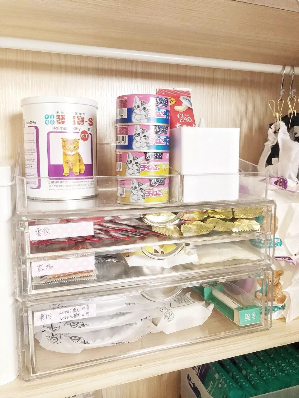除了游乐场,我还腾出了一格柜子给我家猫主子放“私人物品”!