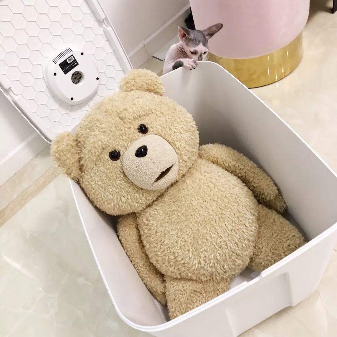 这个泰迪熊跟我了很久了,按一下手就能发出声音,这才发现从美国买回来之后都没给它清洁过!