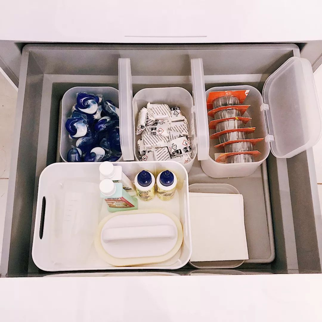 这是我家洗衣机下方专门收纳洗涤产品的地方。