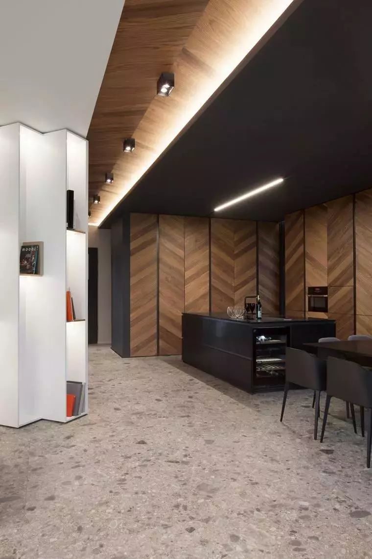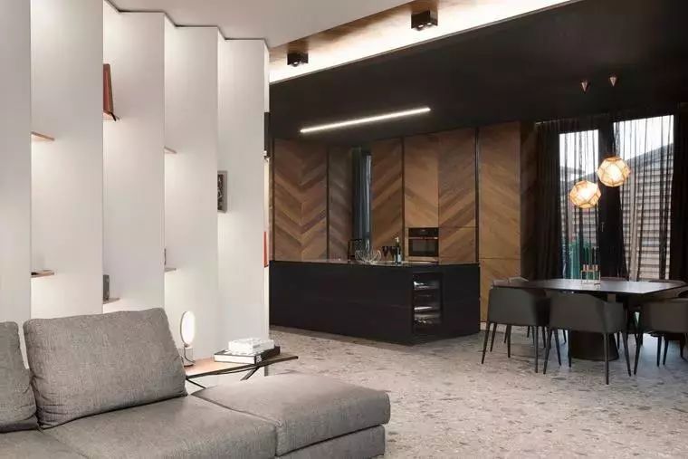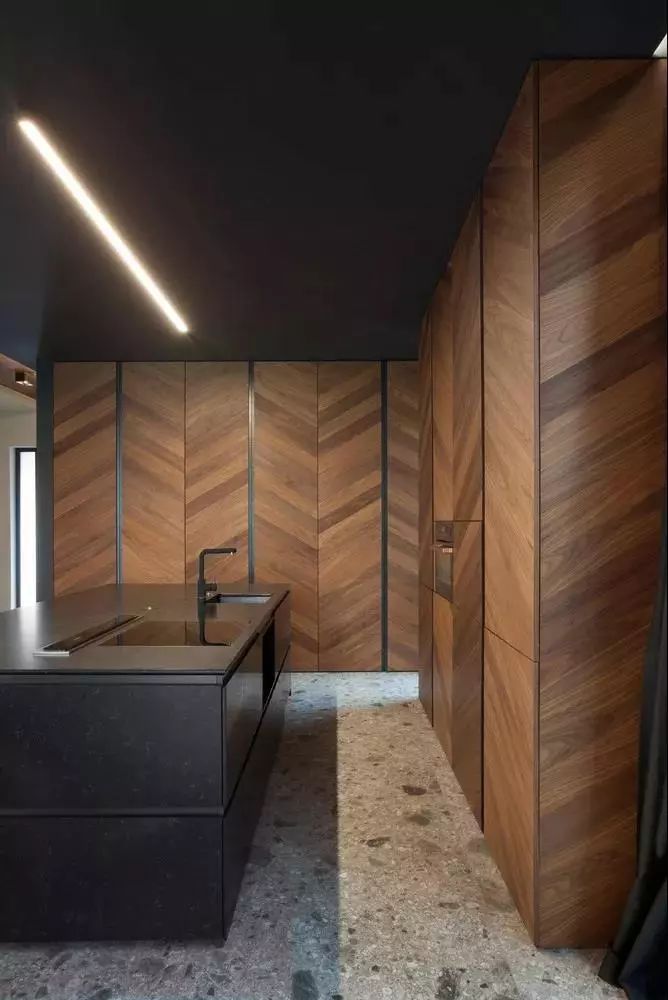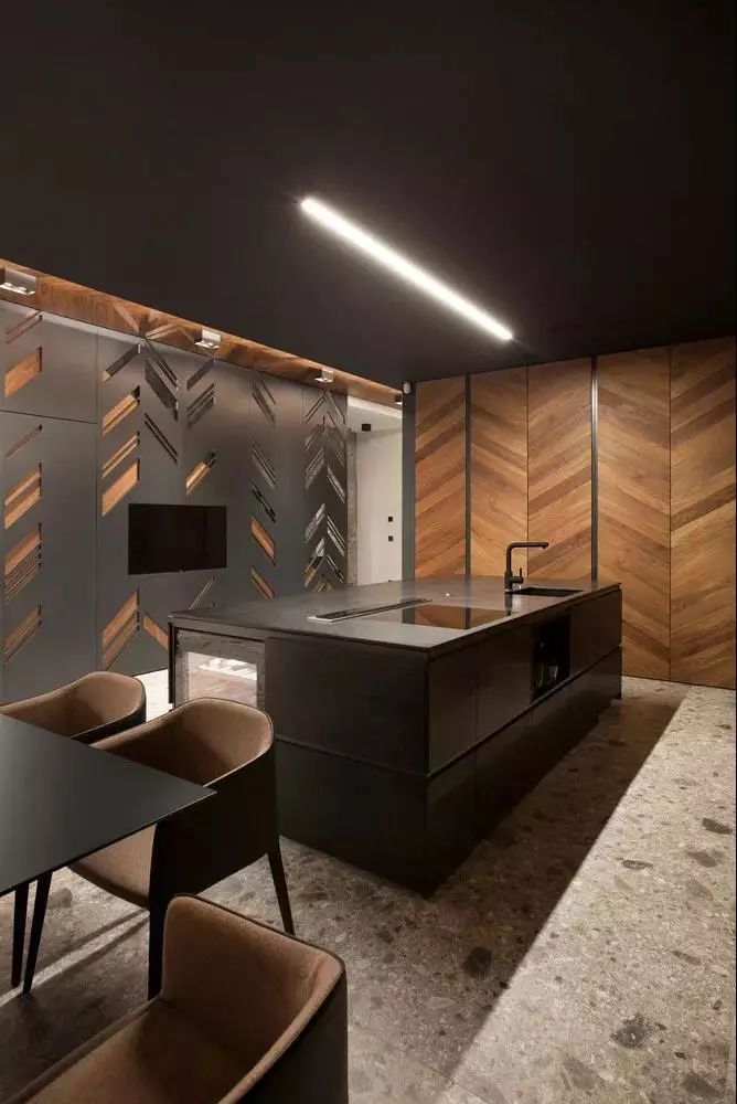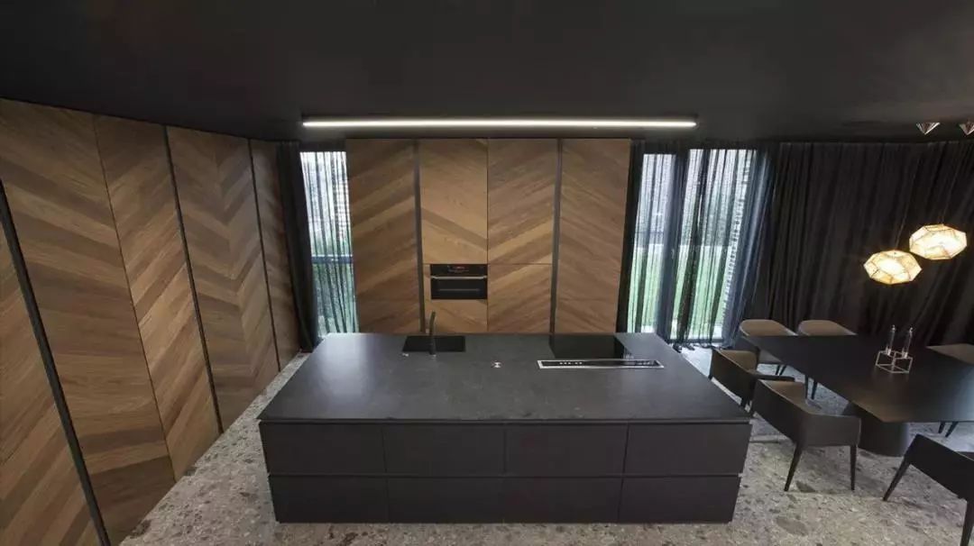 厨房以黑色的岛台为中心
