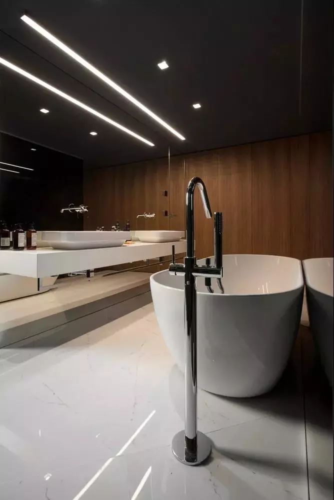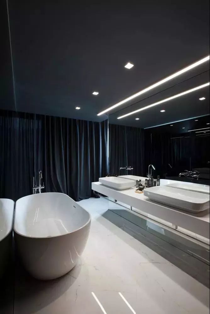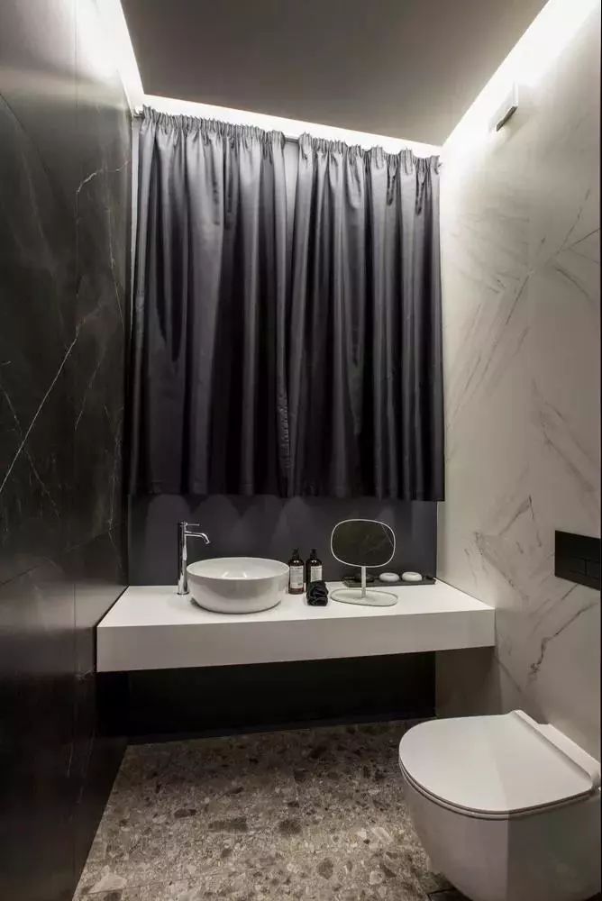 白色的洁具在暗色系空间格外亮眼