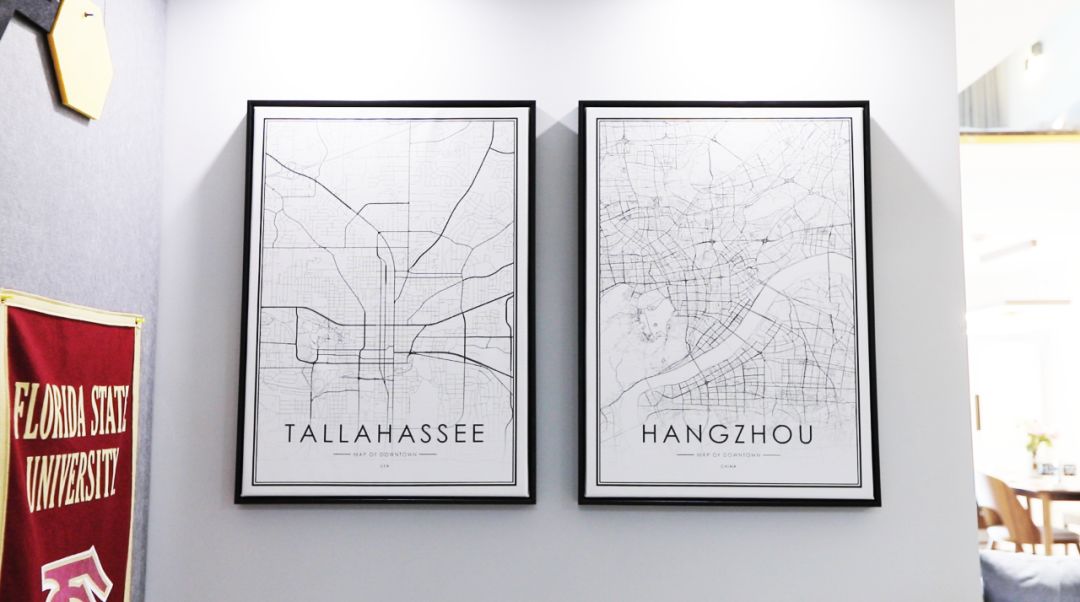 选择居住在杭州这座城市,苜蓿只用了一天,一方面是因为杭州的人文气息,美景如画,另一方面,也是因为驻扎了很多的科技公司,就和她当年选择定居硅谷,一样的选择。所以在苜蓿家的一进门处,挂了两幅城市图,一幅是在美国居住的城市,另一幅就是杭州。