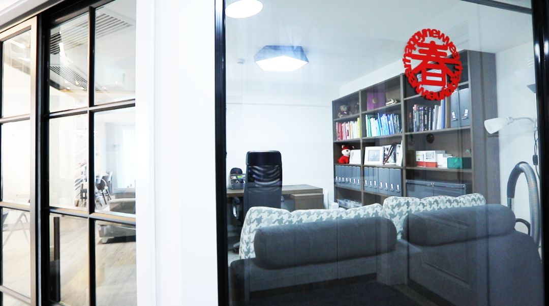 于是,采用了钢架 + 玻璃门,以钻石切面造型,区隔出了一个保证了空间,且不影响步入客厅的房间。