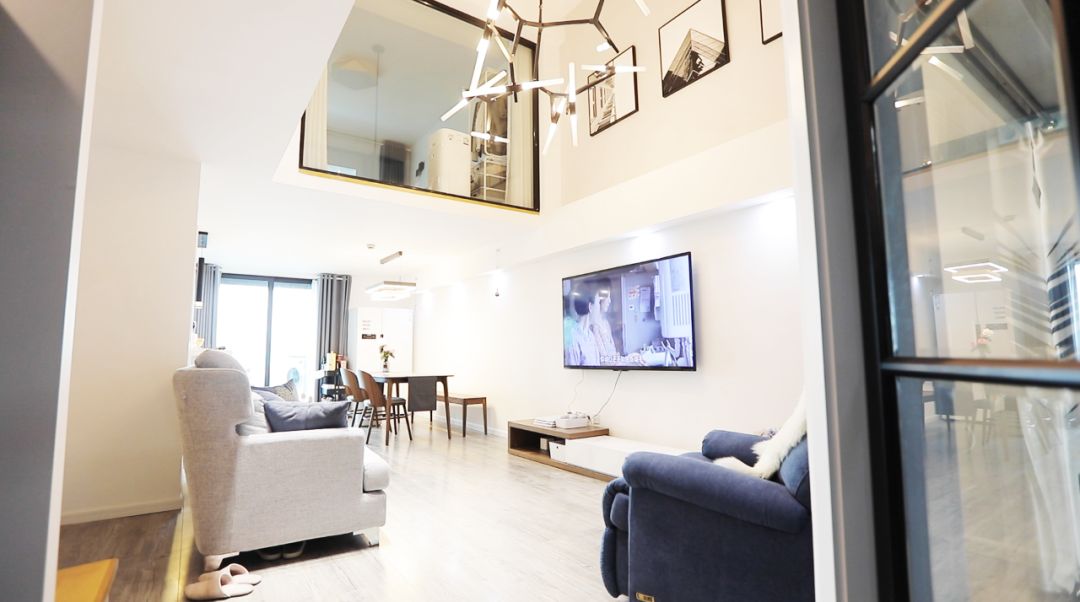 在装修的过程中,LOFT 有 LOFT 的好,因为在最初,就是一套空无一物的「空盒子」,将近 5 米的层高,可以自由自在任你发挥,空间的利用和设施的安排,都由你做主。