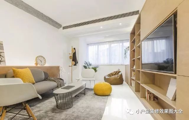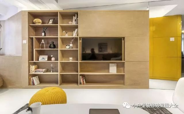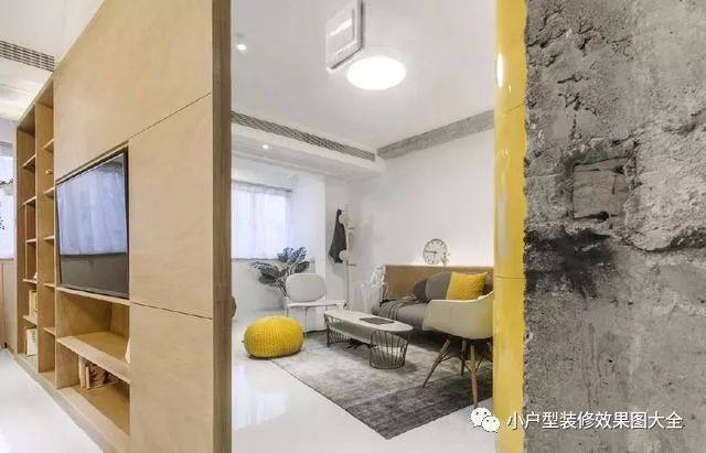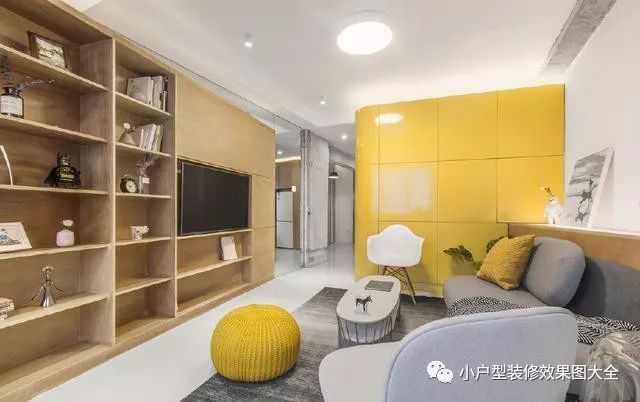 即使是小小的客厅,也要搭配上大大的但是背景墙,不要先看这个背景墙,它不但是一面背景墙,还是一个自然地隔断,将房子的空间进行功能分区。