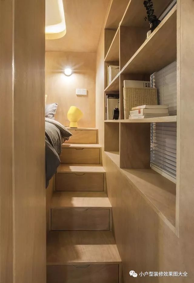 不要小看这些楼梯和墙上的小格子,都是很好的储物空间呢,真的是将空间达到了充分的利用。