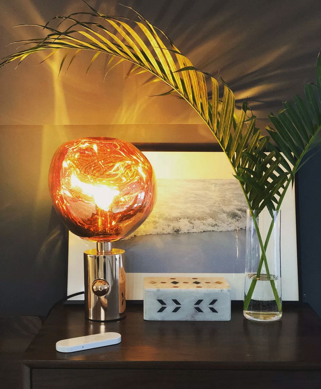 另一边是一个五斗柜,“不对称”正是美感所在。这里摆的是Tom Dixon标志的“熔岩灯”。