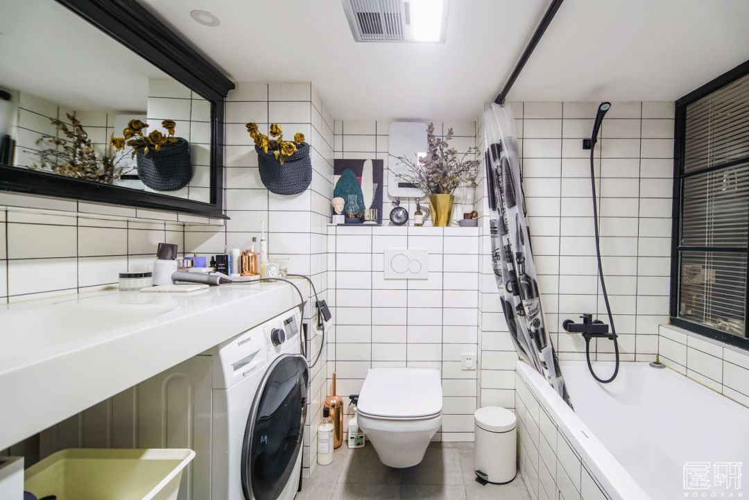 浴室是黑白风格,简洁大气,最最重要还给自己弄了个浴缸,用浴帘做干湿分区。这里顺便提一点,想要迅速提升生活的幸福指数,浴缸这个东西真的是非常有必要的!