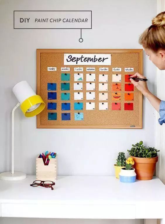 在工作区,还可以搭配装点背景墙,做DIY日历,每隔一段时间换做一次。