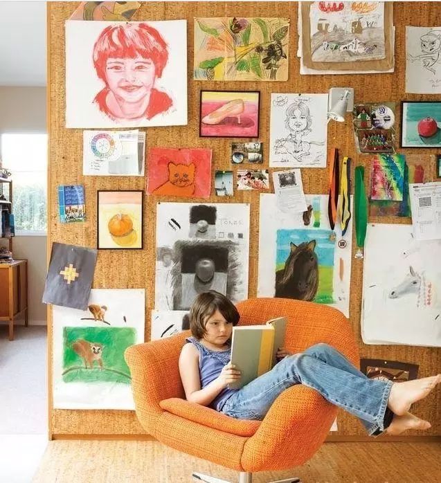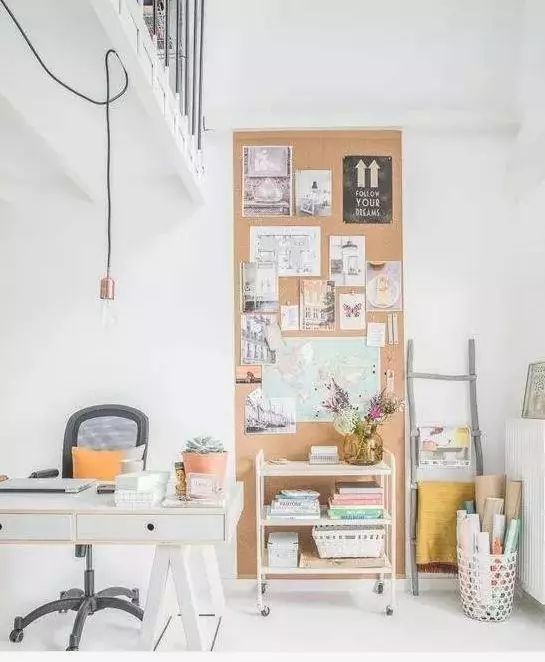 在书房,用软木板做一幅背景墙,告别单调的大白墙,灵感一触即发。