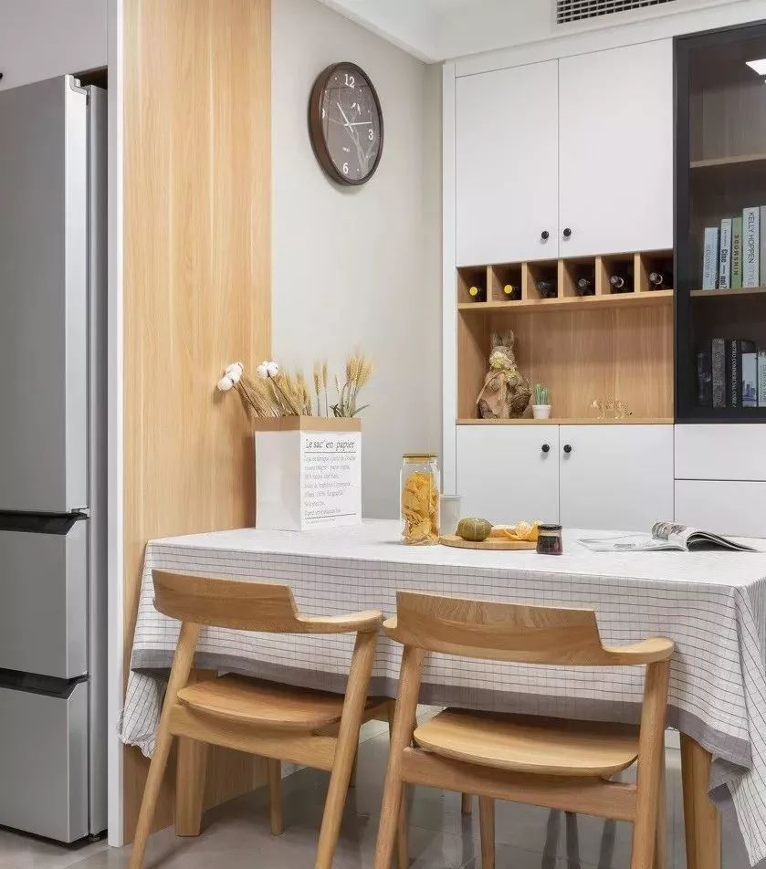 餐厅的后边是一个酒柜和收纳柜的组合橱柜