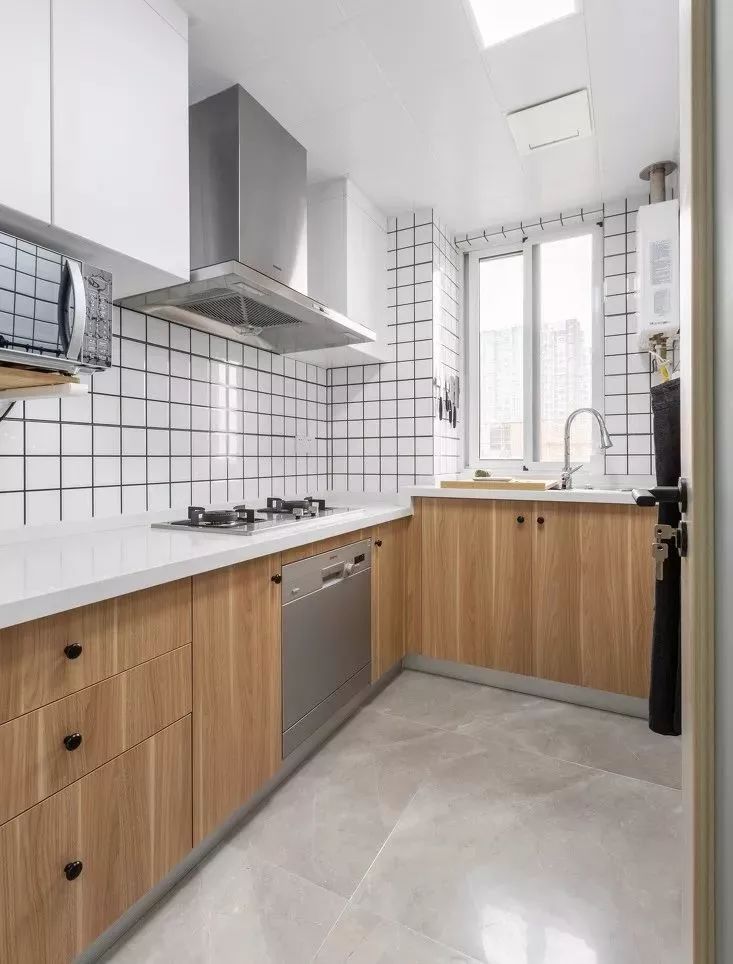 L型格局的白色主体厨房