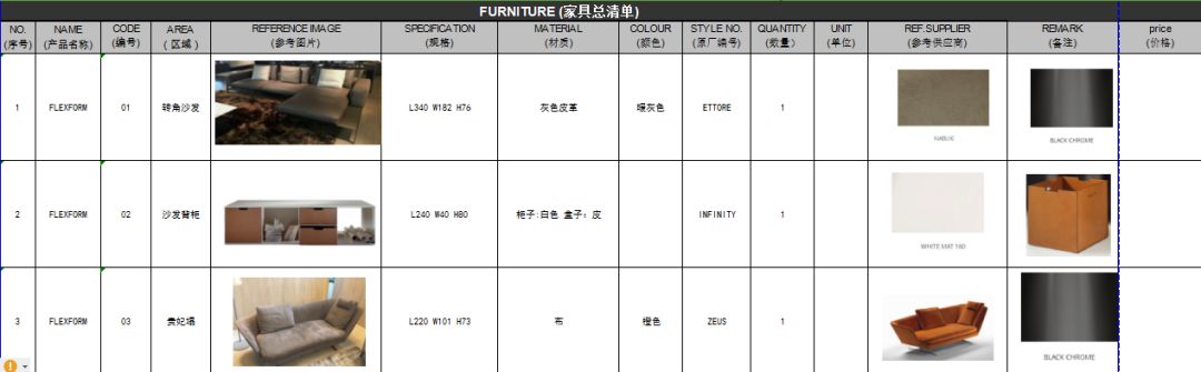 2、软装项目流程文档制作(FFE物料表、报价清单、施工进度表)