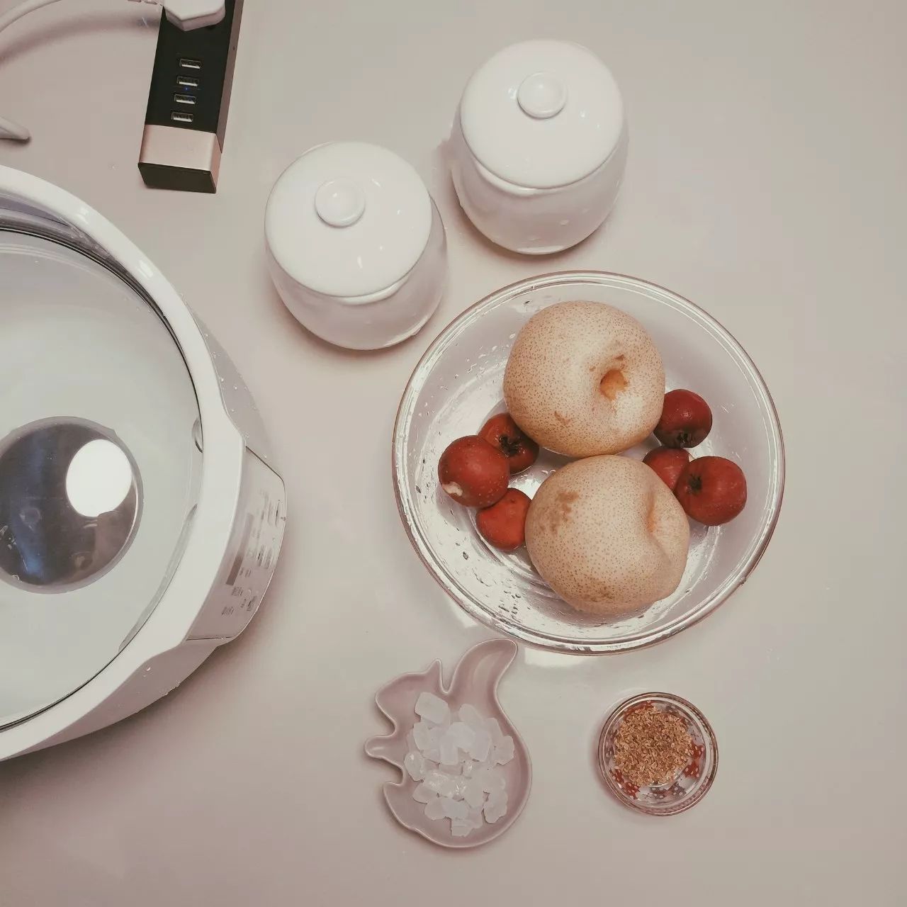 买回来我就迫不及待试验了“山楂雪梨糖水”,炖了1个小时。