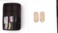 另一种方法就是用束口袋来收纳鞋子,一个袋子能放下2双鞋,节省空间。