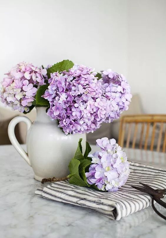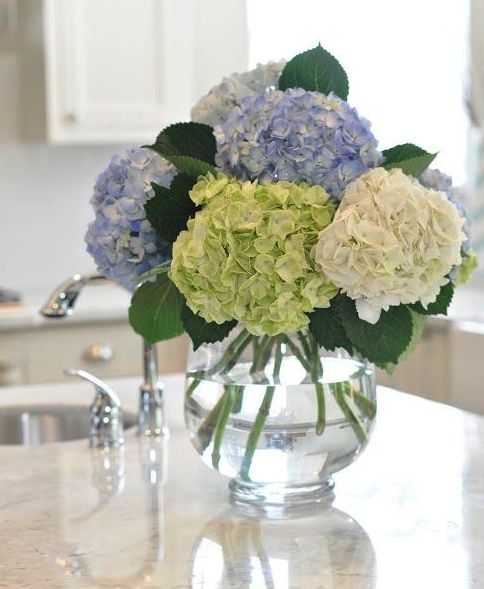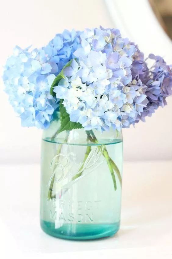 看起来像球一般可爱的绣球花适合透明色或者单色的花瓶,隐隐约约露出硕健的枝干,美貌无比。