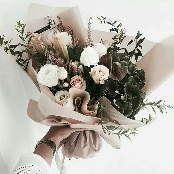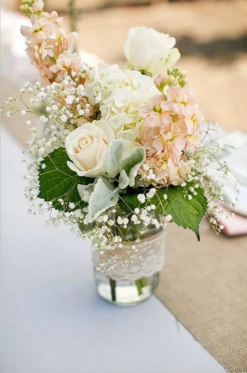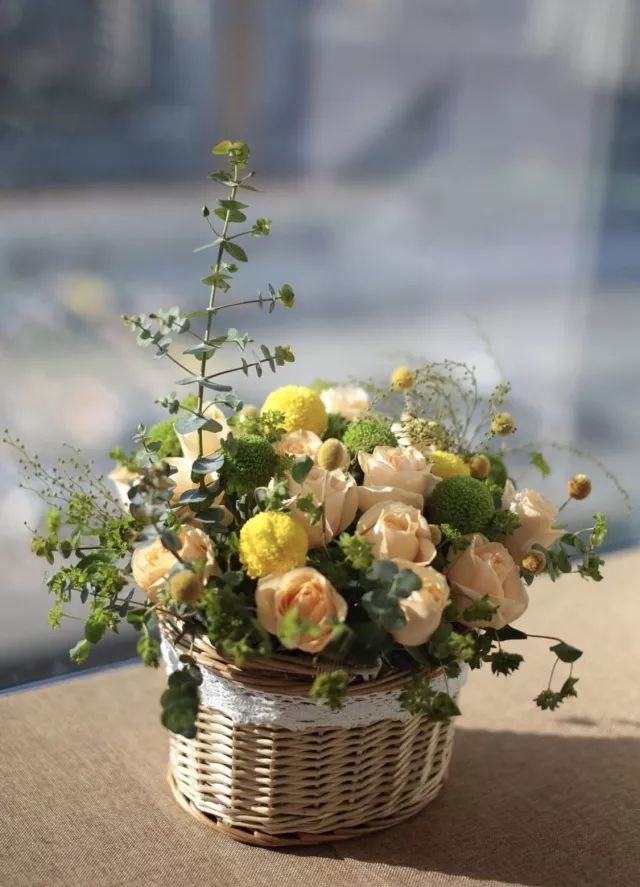 与香槟玫瑰最搭调的是白色的花,比如百合、白玫瑰等等。相近的颜色更有层次感,花器则以选择透明为宜。