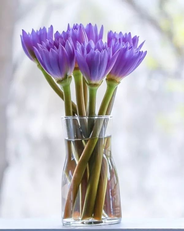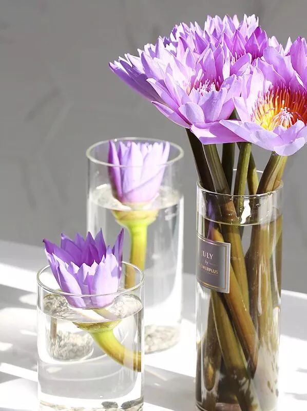 睡莲不能和别的花一起插瓶,因为它需要很多很多很多水。家里瓶子多的话,独立插瓶更有美感。