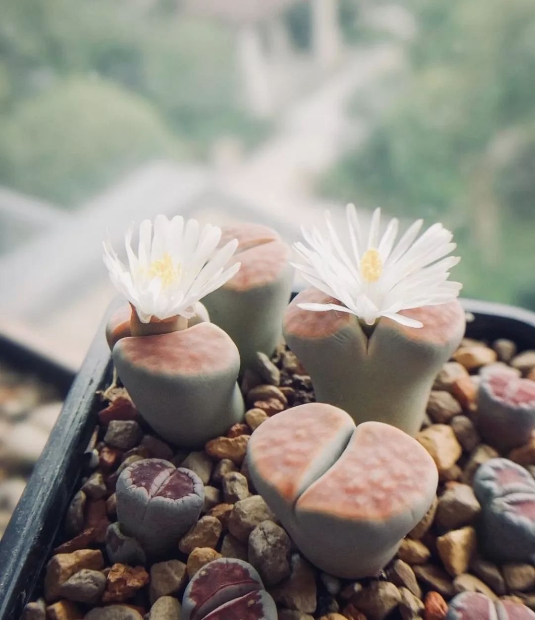 生石花原产于非洲南部地区,被喻为“有生命的石头”,也叫石头花。因形似屁股,也被戏称“屁股花”。