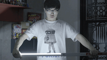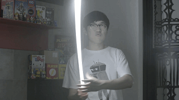 热爱星战,一根白炽灯管也能玩半天。